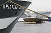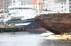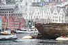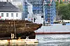 På vei inn Vågen i Bergen møtte Maud en ny generasjon forskningsfartøy, her representert ved FF Kristine Bonnevie. Det kraftige, isforsterkede skroget til Maud har overlevd under vann siden skipet sank i 1930, mens dekket har råtnet bort. Vraket av polarskuta Maud kommer til Bergen, 100 år etter at Roald Amundsen dro frå Noreg for å segle gjennom Nordaustpassasjen og Nordvestpassasjen. Taubåten Tandberg Polar har tauet Maud på en lekter helt fra Grønland, og skal til Vollen i Asker. I Vågen lå også Kristine Bonnevie, Styrbjørn, Hestmanden, Hans Brattstrøm og en rekke veteranfartøy.