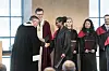 Nancy Burungi disputerte ved Det medisinsk-odontologiske fakultet med en avhandling om amming og melketannkaries i Uganda. Her får hun sitt diplom av universitetsdirektør Kjell Bernstrøm Foto: Tor Farstad