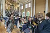 Studentar frå Griegakademiet skal spela fanfare under den akademiske prosesjonen. Sindre Bowitz Larsen og Kristine Mehammer på trompet, Endre Nygård på tromboe og Nataniel Hjønnevåg på perkusjon. Foto: Tor Farstad Foto: Tor Farstad