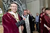 Rektor Dag Rune Olsen tok seg ein liten tur opp for å sjå den fullsette aulaen før han kom opp i akademisk prosesjon. Foto: Tor Farstad Foto: Tor Farstad