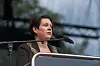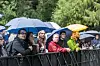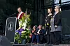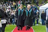 Statsminister Erna Solberg og rektor Dag Rune Olsen på veg opp på scena i Nygårdsparken.
