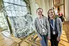 - Æsj!, braut det ut frå salen då elevane fekk sjå bilde av ein heller vanleg munn. Professor i oral patologi Kathrine Skarstein og overtannlege Torgild Lægreid forklarte korleis ein kan bruka tennene til å finna ut alderen på menneske. Foto: Tor Farstad