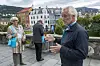 Botanikar Per Harald Salvesen heldt ein guida tur i Muséhagen. Han viste fram kvar universitetet sin gamle parsellhage var, der tilsette kunne plukke frukt og bær. Foto: Tor Farstad