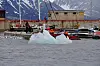 Et større isfjell drev inn på havna og måtte dyttes vekk for ikke å knuse tankene. Foto: Jorun Egge
