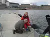 Øystein Leiknes og Camilla Svensen teller og sorterer hoppekreps som skal være med i forsøket. Foto: Jorun Egge