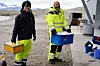 Richard Bellerby og Andrew King bærer inn vannprøver for analyse av CO2 og pH. Foto: Jorun Egge