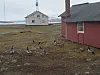 Kvitkinngjess med kyllinger er det mange av i Ny Ålesund og de er ikke folkesky. Foto: Gunnar Bratbak