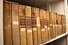 Her luktar det fisk! Fleire hyller er fulle av ordrebøker frå nordlandshandelen. Universitetsbiblioteket Spesialsamlingane Nordlandshandelen