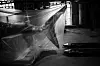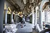 Eit reinsdyr står klart til å bli rulla ut i ein ventande kontainer før det vert senka ned på bakken og frakta vidare til fjernmagasinet der det skal stå til museet er ferdig oppussa.