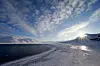 Tilbake nær Longyearbyen i midten av mars krøp solen såvidt over fjellene i horisonten. Alle foto: MicroPolar.