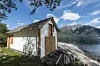 Inni naustet er det båt og redningsvestar gjestene på Tingviken kan bruka. Tingviken Utne Velferdstilbod Freda naust
