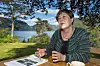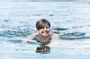 Morgonbad er obligatorisk når ein er på Tingviken, meiner Åse Tveitnes. Ho fekk ikkje lokka journalisten lenger uti enn til at det var vatn til midt på anklane… Tingviken Utne Velferdstilbod Åse Tveitnes