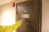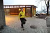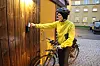 Ingunn Lunde ved Institutt for fremmedspråk gleder seg over et flunkende nytt sykkelparkeringshus på HF. Her låser hun seg inn ved hjelp av nøkkelkortet. Foto: Eivind A. Pettersen