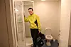 Ingunn Lunde ved Institutt for fremmedspråk viser På Høyden den kombinerte dusj- og toalettgarderoben i kjelleren. Foto: Eivind A. Pettersen