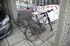 Realfagbygget har godt med sykkelplasser, men noen steder må tohjulingene konkurrere med biler og materialer. Denne sykkelen bærer preg av å ha stått her en stund. Foto: Eivind A. Pettersen