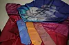 De store sjalene er 1,2x1,2 meter. Dette er den flerfargede varianten. Foto: Hilde Kristin Strand UiB-sjal Sjal KMD