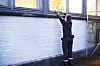 Er vinduskarmen intakt? Vinduet ordentlig lukket? Mathias sjekker at skallsikringen er ok.