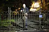 Dører og porter blir kontrollerte. Porten inn til Knut Fægris hus gir etter. Den viser seg å være ødelagt. -- Her er det jo bare å gå rett inn, sier Fredrik.