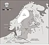 Dette kartet viser Nord-Europa for om lag 10 000 år sidan, og det viser korleis forskarane trur steinaldermenneske har vandra frå aust og til Vestlandet. I tillegg til i Hardanger har forskarane gjort liknande funn ved Stavanger. Ill: Knut Andreas Bergsvik