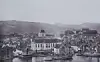 Ei kvinne frå Bergen kjøper fisk frå ved Bryggen. Opphav: K. Knudsen, Ukjent år. Billedsamlingen, UB Bergen.