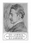 Vi har dessverre ikke Larsens svar på det nesten gråtkvalte tiggerbrevet, men vi kan lese ut av Simpsons overstadige takksigelser i de påfølgende brevene at Larsen hadde gitt ham oppdrag med å lage Ex libris-merker til både ham selv og Bolette. Og Larsen fortsatte med å bestille Ex libris, monogrammer og portretter fra Simpson.