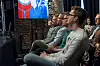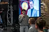 Studentane gjorde seg klare til «Roast en rektor»-delen, som det unekteleg var knytt visse forventningar til. Imens stilte debattleiar Guri Solberg frå TV 2, gift med ein klimaengasjert filosof på UiB, sine spørsmål.