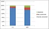 Figur 3. Institusjonenes andeler av forskningsmidler fra EU og NFR