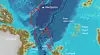 Figuren viser operasjoner med luftputebåten i Polhavet så langt (rød strek).