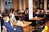 Både tilsette og studentar hadde møtt fram til den første Café humaniora. Foto: Hilde Kristin Strand