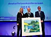 Direktør Anita Krohn Traaseth i Innovasjon Norge delte ut prisen til innkjøpssjef Kjetil Skog. Til høgre avdelingsdirektør Dag Strømsnes i Difi. Foto: Stig Weston