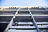 På utsida har bygget eksponerte betongelement i fasaden, med eit raster av horisontale og vertikale lamellar utanpå. Dette er rett og slett pynt, men lamellane fungerer òg som ein slags balkongar.