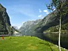 Ein tysk utvekslingsstudent i 20-åra omkom måndag då han fall i ei fjellside i Nærøyfjorden.