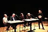 – Mellom deg og maten ligger det et imperium av bakterier. Lytt til din mage, og spis variert, sa professor Tore Midtvedt (til høyre). Hans att i panelet sammen med (fra venstre) lege Geir Flatabø, professor Trygve Hausken, ernæringsfysiolog og journalist Silje Bjørnstad. Marion Solheim var debattleder. Foto: Hilde Kristin Strand