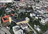 Joachim Frielesgate 1 kan bli revet og erstattet med et glasstårn eller et annet nybygg, mens Villaveien 1A kan bli knyttet til Historisk museum. Men prislappen begynner på en halv milliard kroner. Illustrasjon: Google Earth