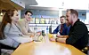 F.v: Studiekameratane Andrea Christensen, Knut Oldereide, Magnar Langeland og Torbjørn Warhuus i kantina på kampus Haugesund.