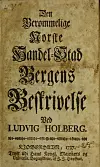 Holberg innleder boken med å fortelle om Bergens grunnleggelse, utvikling og eldre historie. Han gjør et poeng av at bybrannene har vært med på å forme Bergen bys utseende. Byens geografiske plassering og omland omtales også, og han lister også opp det han regner som byens syv fjell, nemlig «Rundemanden, Flöyen, Oldrik, Solheims Field, Damsfieldet, Ludderhorn, [og] Askelandsbierg”.