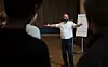 Først til slutt avslører han at det hele har vært en øvelse hvor han har manipulert dem til å fokusere utenfor seg selv, se andre mennesker, og ikke minst bli tvunget ut av komfortsonen ved å fremføre hastearbeidet fra scenen.
