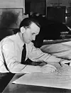 Sverre Petterssen på jobb med vêrkart ved Dunstable våren 1944. Bildet er tatt rett i forkant av arbeidet med varselet for D-dagen. (Foto: meteorologihistoriker James Rodger Fleming).