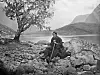 Me er tilbake hos den unge jenta i Lærdal, men ho har flytta seg sidan sist. Knudsen fotograferte to bilete av jenta på den vesle husmannsplassen, eitt utanfor våningshuset, det andre utanfor det som truleg er eit fjøs – begge stader med rokken som rekvisitt og det tankevekkande blikket på plass.