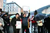 60-70 mennesker møtte opp på for å markere misnøye med regjeringens planer, omtrent samtidig med at nye lavtrykk slo inn over byen.