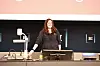 — Har dere noen spørsmål så blir jeg her en liten stund til for å svare på de, sier Tonje Hoff Gjesdal avslutningsvis til VG3-elevene fra Stend og Langhaugen videregående skole.
